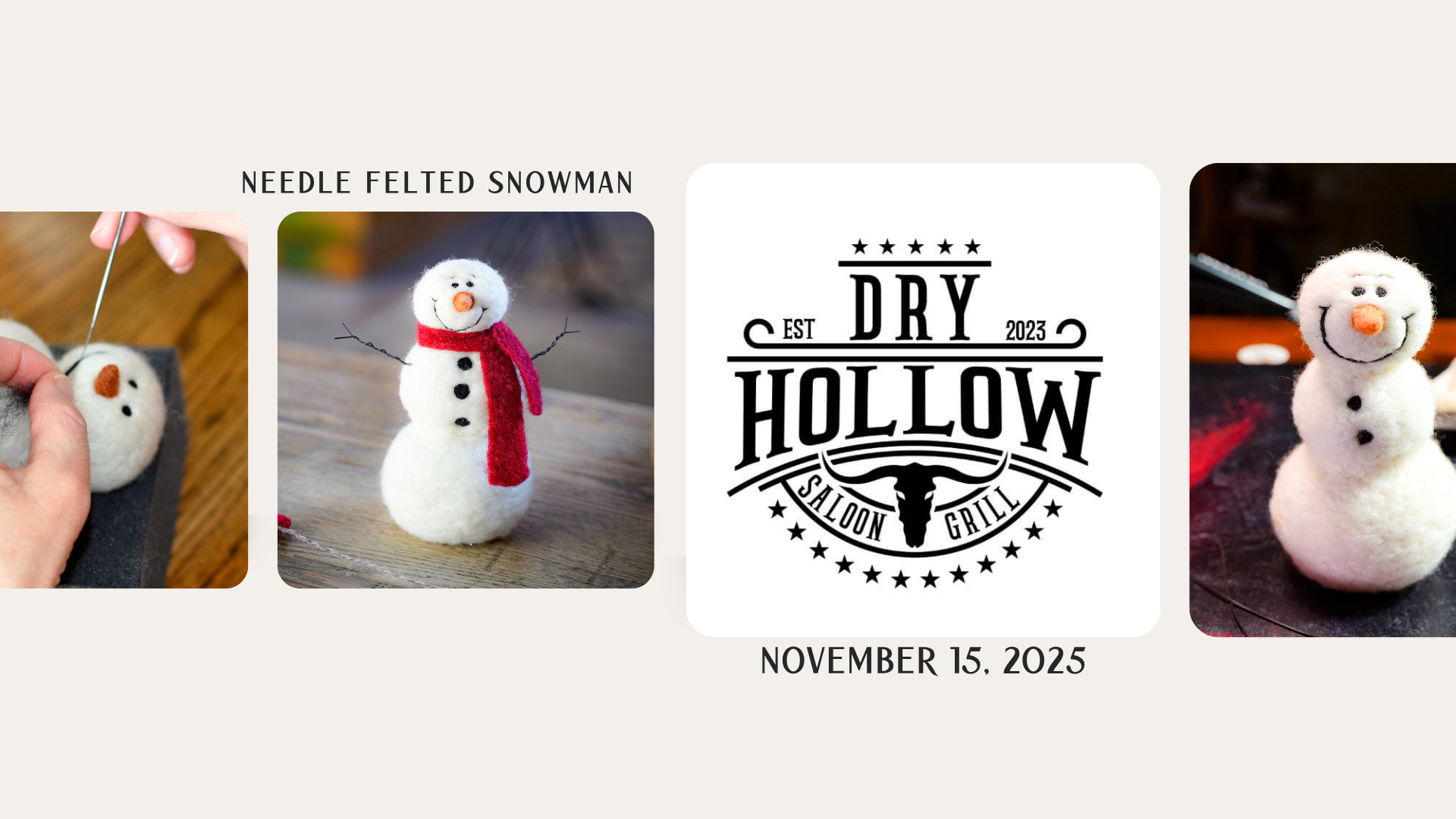 Join Teresa Perleberg of Bear Creek Felting for a fun and relaxing Snowman Needle Felting Class at the Dry Hollow Saloon & Grille in Fort Ransom!